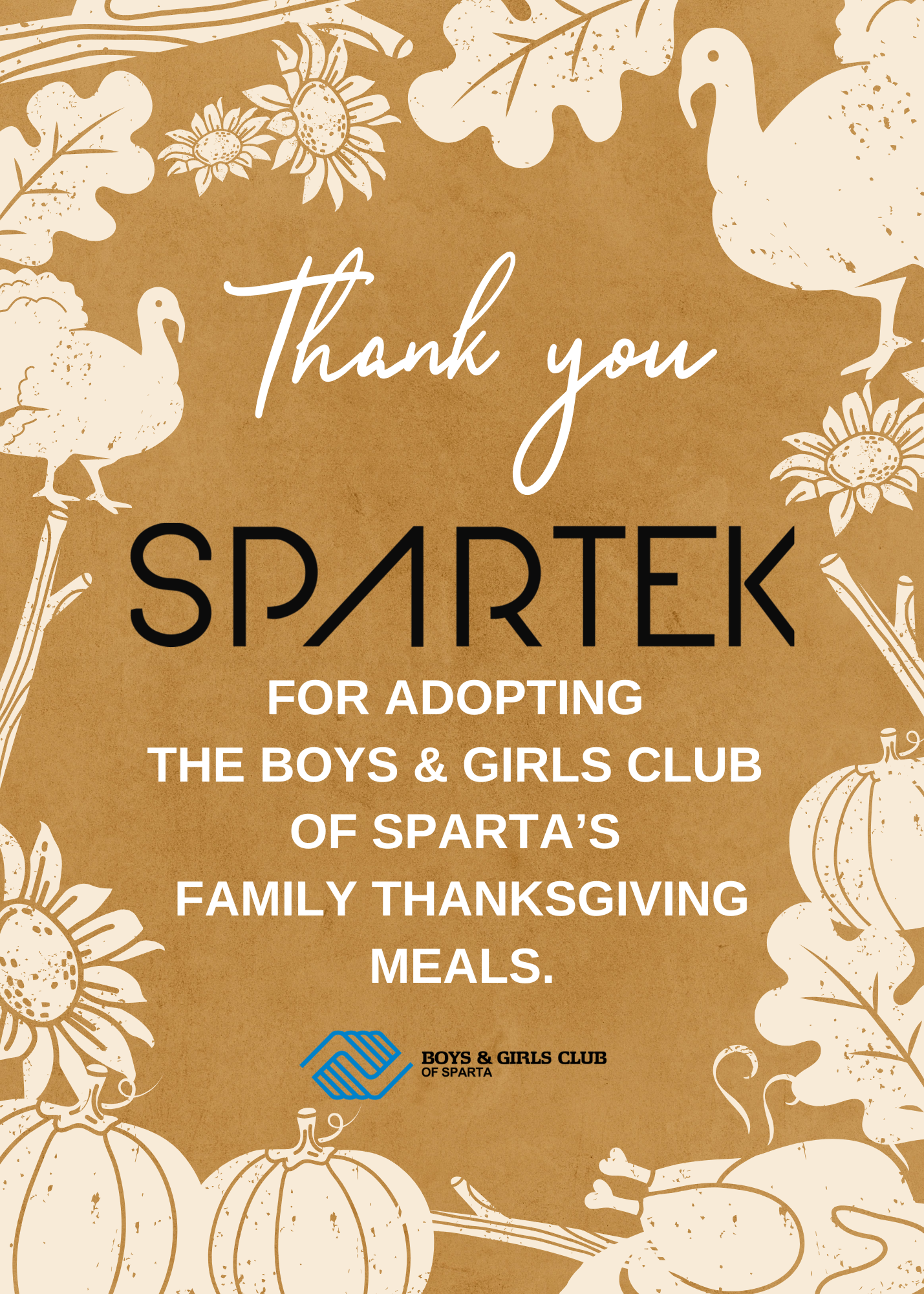 To adopt a family for a Thanksgiving Meal, please complete the form by November 15th. You will be contacted and matched with a family, and information on needed items will be shared with you. Donations should be dropped off on Monday, November 25th. If you donate money for Club staff to purchase meal items for you, please send it to the Club when you complete the request form.